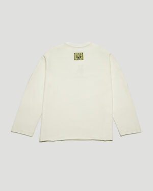 A cream longsleeve with the proverb “Every dog is a king in its own yard” (meaning “Everyone feels confident on their own turf”).