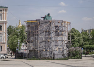 On February 24, 2022, Russia initiated a full-scale invasion of Ukraine. In this war, Ukrainians are defending not only their freedom and lives but also their culture and history. One of the symbols of this struggle has become the monuments of the capital of Ukraine – Kyiv, around which citizens have carefully erected protective frames. We decided to document this moment in our history. Thus, the project “Wartime Kyiv” was born – a set of postcards featuring monuments of the capital during wartime.